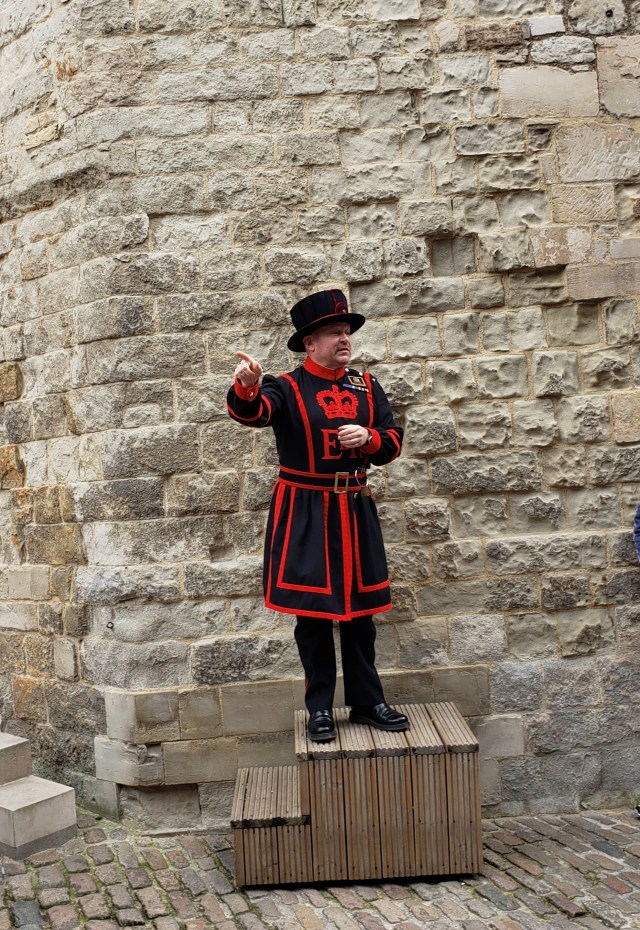 This is our Yoeman. He pointed out what it takes to gain the honor of being a Yoeman and wanted us to know that what he us wearing is a uniform not a costume. He is very proud of his 33 years military experience and his position as a Yoeman Warder.