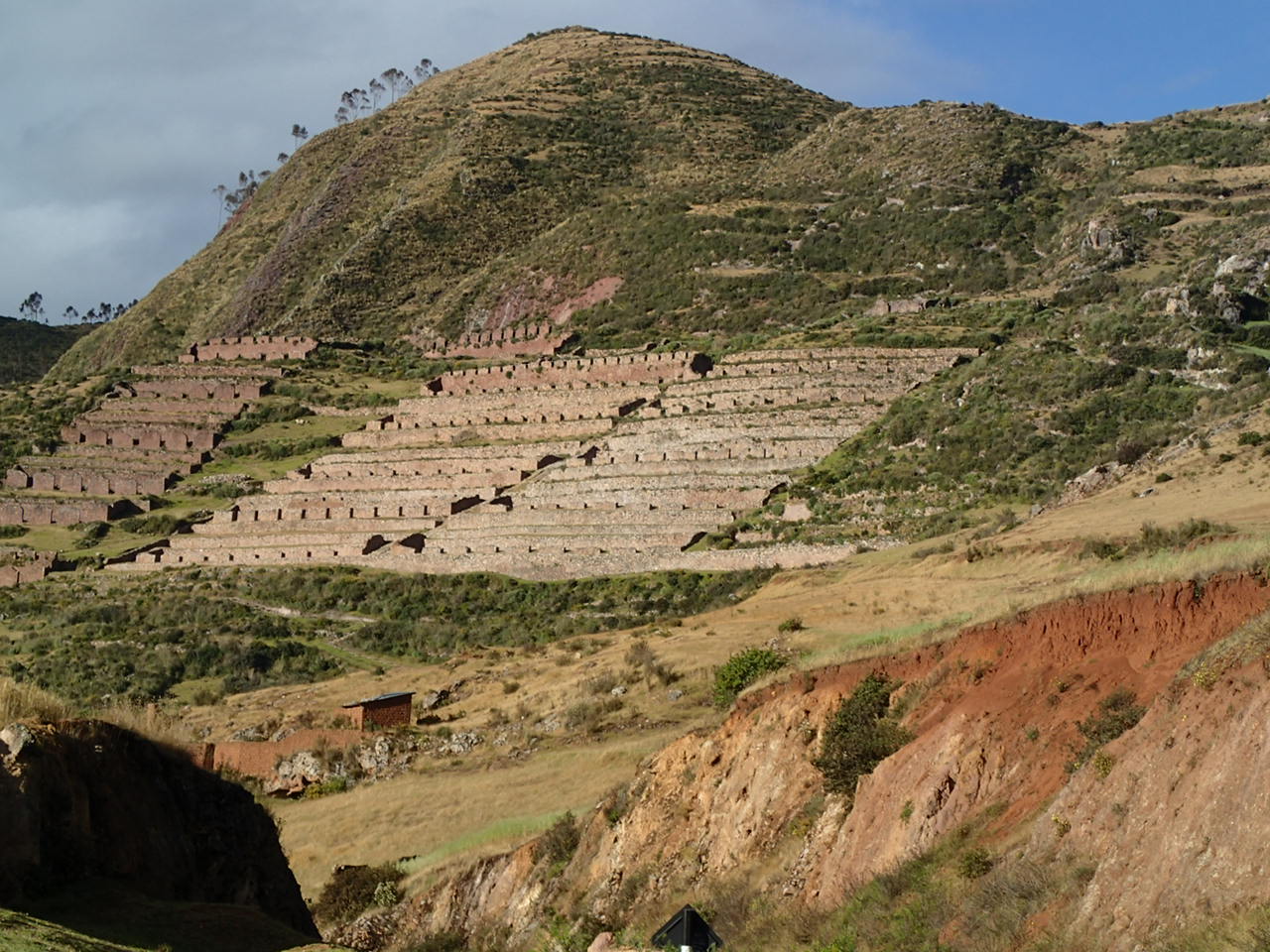 The Incas developed large storage areas with windows for ventilation. The people would bring new agricultural items there once a year and they would be returned to the people during times of poor production. Dehydrated potatoes, for example, could be kept in these storage areas for 10 to 20 years. We were shown some dehydrated potatoes and they looked and felt like stones.