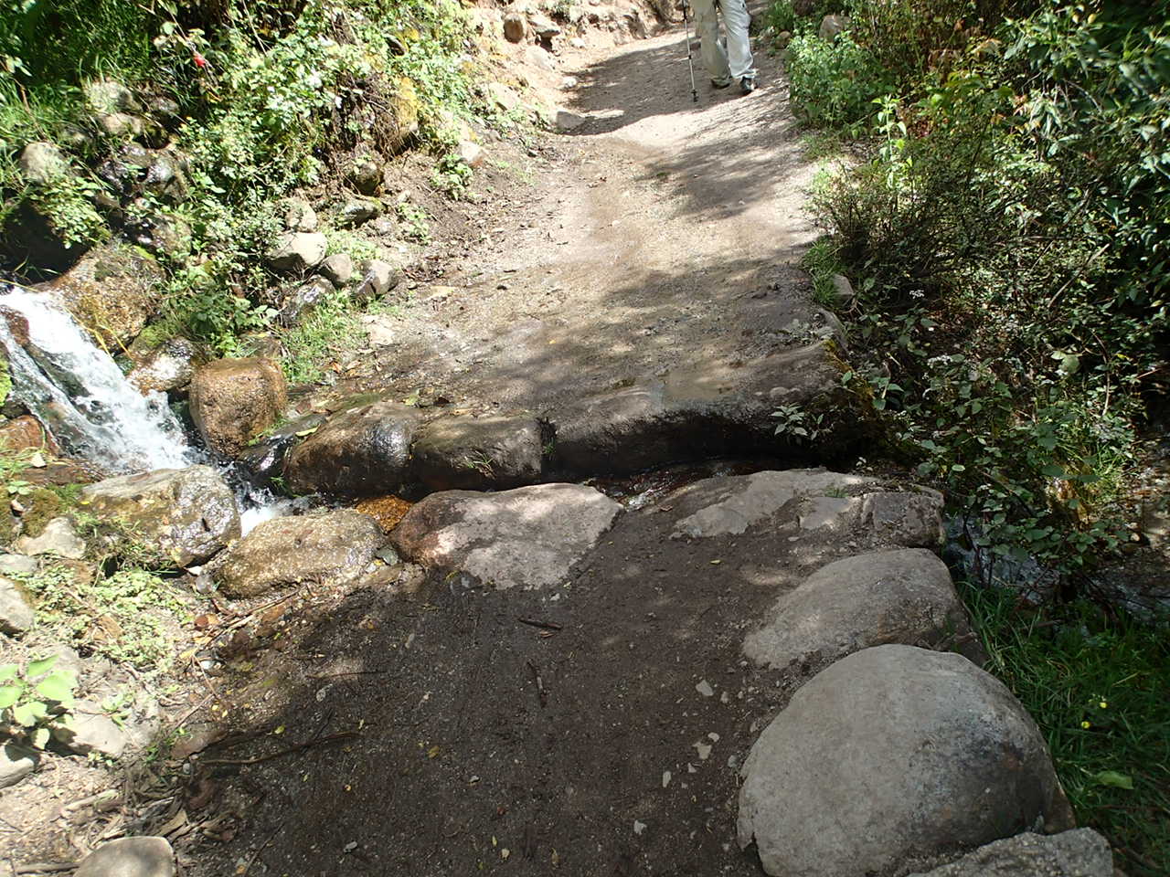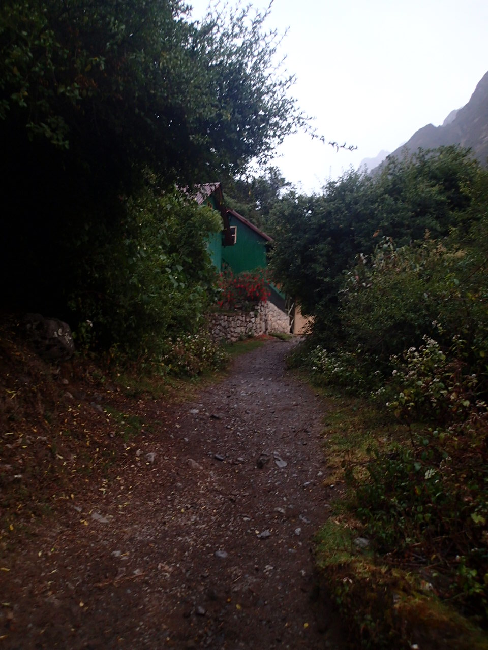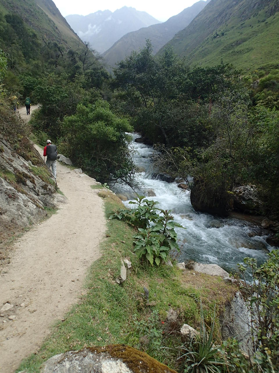 After this last picture it started raining and got dark and got not so much fun….I began to think I had made a big mistake thinking I could make this trek. It got steeper and more stairs and harder….camp came after dark and the tents were soaked inside and out….my flashlight wouldn’t work…..whine, whine, whine!!! Then a fantastic supper was served in our dining tent and we got our briefing for the next day – a 10 to 12 hour hike up Dead Woman’s Pass, down into the valley, up over the next pass, then down to camp which was, we were told, going to be the coldest night of the trek…..bed, even in a wet tent, sure felt good that night!!