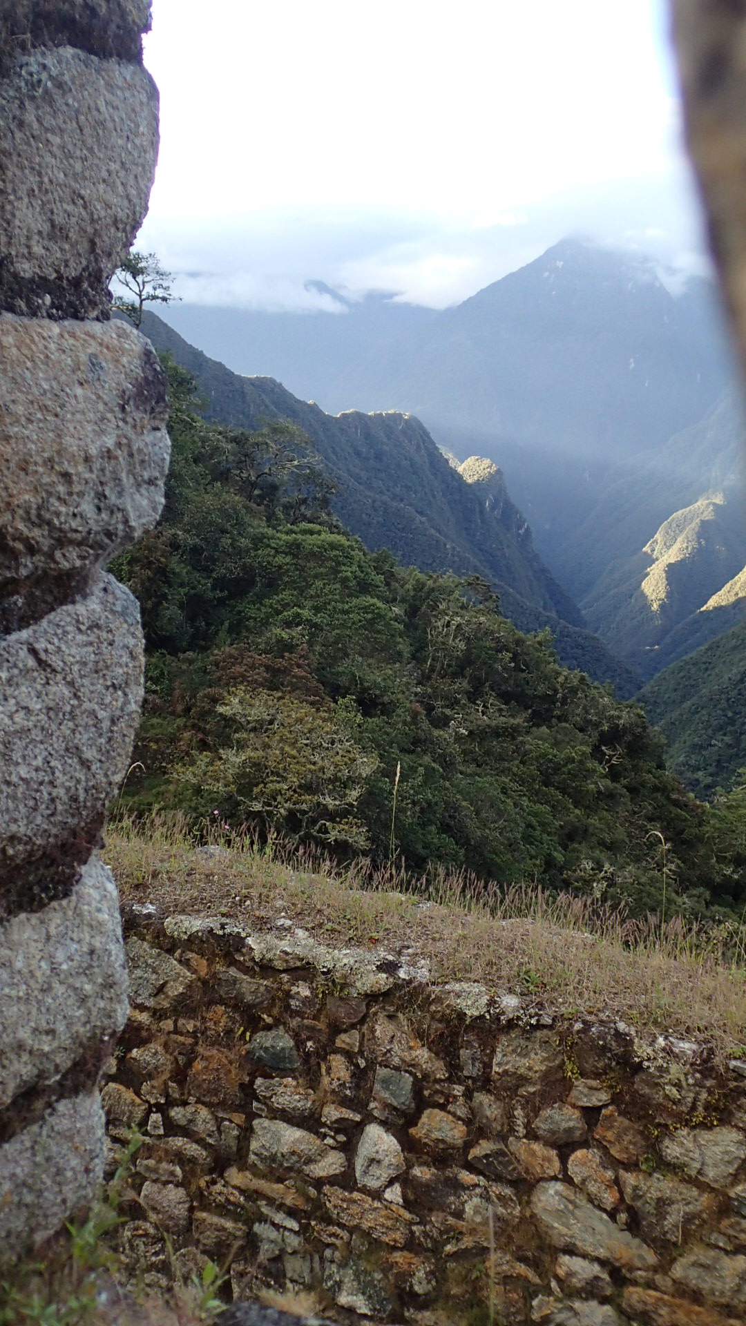 The last major ruins along the trail. Our last campsite was near here. We arrived early so we could get some rest. We were up by 0300 the next morning so we could be first at the checkpoint which was only 3 minutes from our campsite. It did not open until 0530, but, we were able to be under cover with seats while those behind us had to stand or sit on very wet ground – it rained a lot during the night – while they waited for the checkpoint to open. Don’t tell Ramiro, but, I was kind of glad he insisted we get up so early after seeing that.