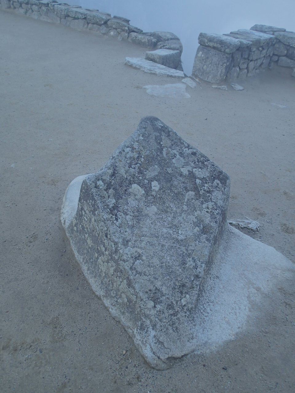 Well, it is not really a llama stone, but when the sun hits it just right – there was only fog when I took the picture – it’s shadow looks like a llama’s head and neck. It really is more a compass stone as it points to the 4 cardinal points of the compass, or so our guide Ramiro told us, no one had a compass to prove it with. He did have a picture of the shadow, though.