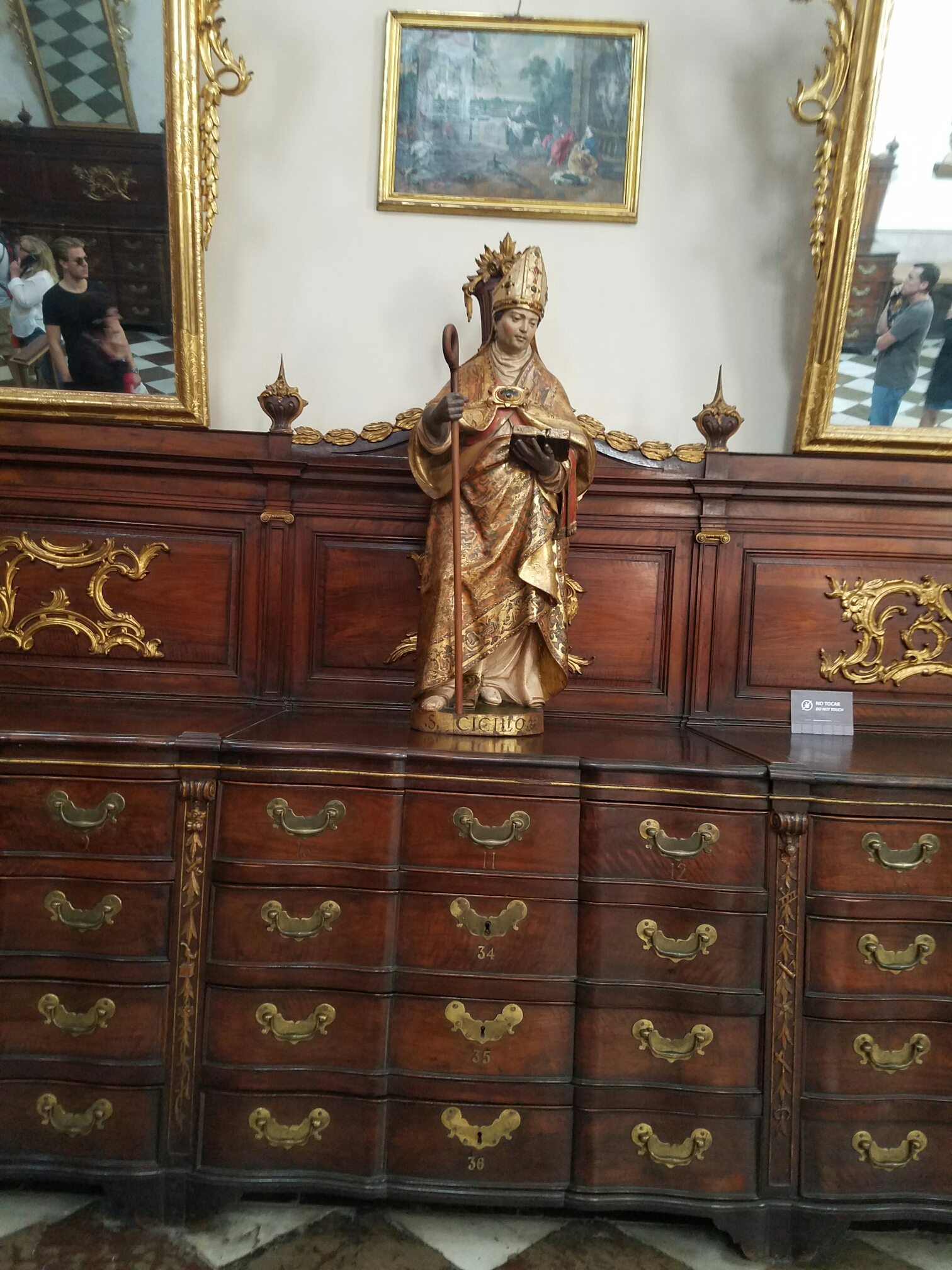 There were statues and lots of mirrors in the room where the pictures were on display . Ithe was weird to keep seeing yourself in the mirrors ; kind of like being on display yourself .